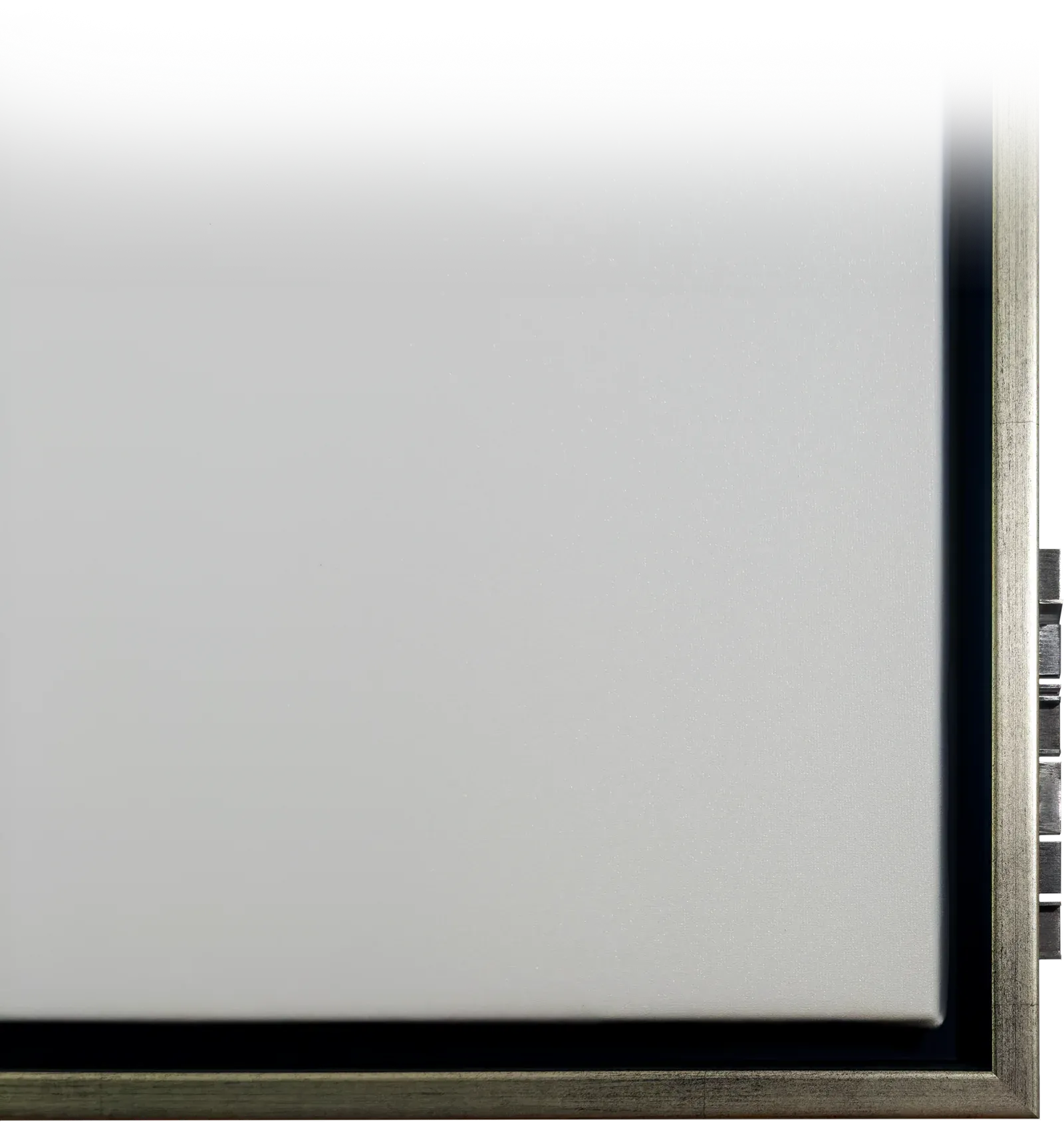 Das Herzstück, das sich im unbenutzten Zustand samtweich schmeichelnd in den Raum einfügt. Das sorgfältig ausgewählte Material des mattweißen High-End-Leinwandtuchs sorgt für optimale Bildqualität bei Benutzung. Die präzise gewählten Übergänge und Kurven resultieren in einer neuen Form der plastischen Bilddarstellung. Die perfekte Ergänzung – für Ihr Wohnzimmer und Ihr Heimkino.